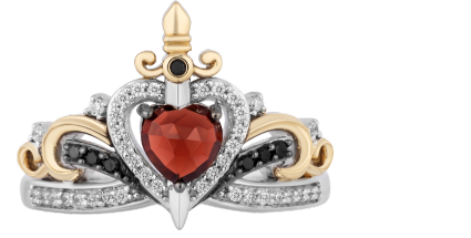 Power, beauty and sorcery shine in the Enchanted Disney Fine Jewelry rings, necklaces and earrings inspired by Disney’s Evil Queen from Snow White and the Seven Dwarfs. Her wicked heart pierced by a dagger is as deadly as the poison in her apple. Her dark glamor sparkles in black diamonds and onyx. Channel the Evil Queen inside yourself and stand out from the crowd with an unapologetic symbol of rebellion.
