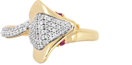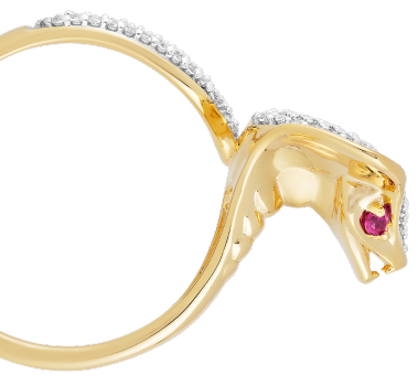 Designed with a mystifying look, these sculpted serpentine head designs with black rhodium and faceted red garnet puts an enchanting spin on the jewelry. Inspired by the Royal Vizier of Agrabah, these pieces bring a wickedly whimsical edge to the contemporary jewelry.
