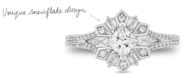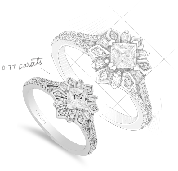 Let love warm your heart with this romantic Elsa engagement ring inspired by the enchanted arctic world of Disney’s Frozen. Icy diamonds are ready to melt and open the door to love. As unique as a snowflake, each Elsa Engagement Ring celebrates your power and individuality.