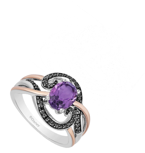 The sea witch from Disney’s Little Mermaid inspired a powerful collection of black rhodium, black diamonds and purple amethyst. This sophisticated and sassy collection features designs of her tentacles with nautilus shell and powerful trident.