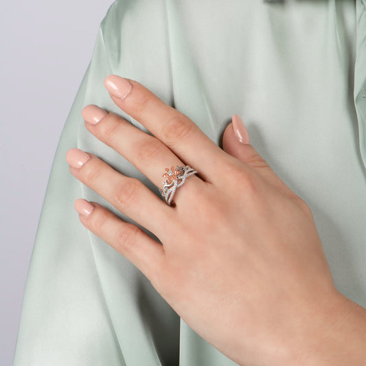 Enchanted Disney Fine Jewelry 14K Rose Gold over Sterling Silver with 1/10 CTTW Rose-de-France Rapunzel Ring