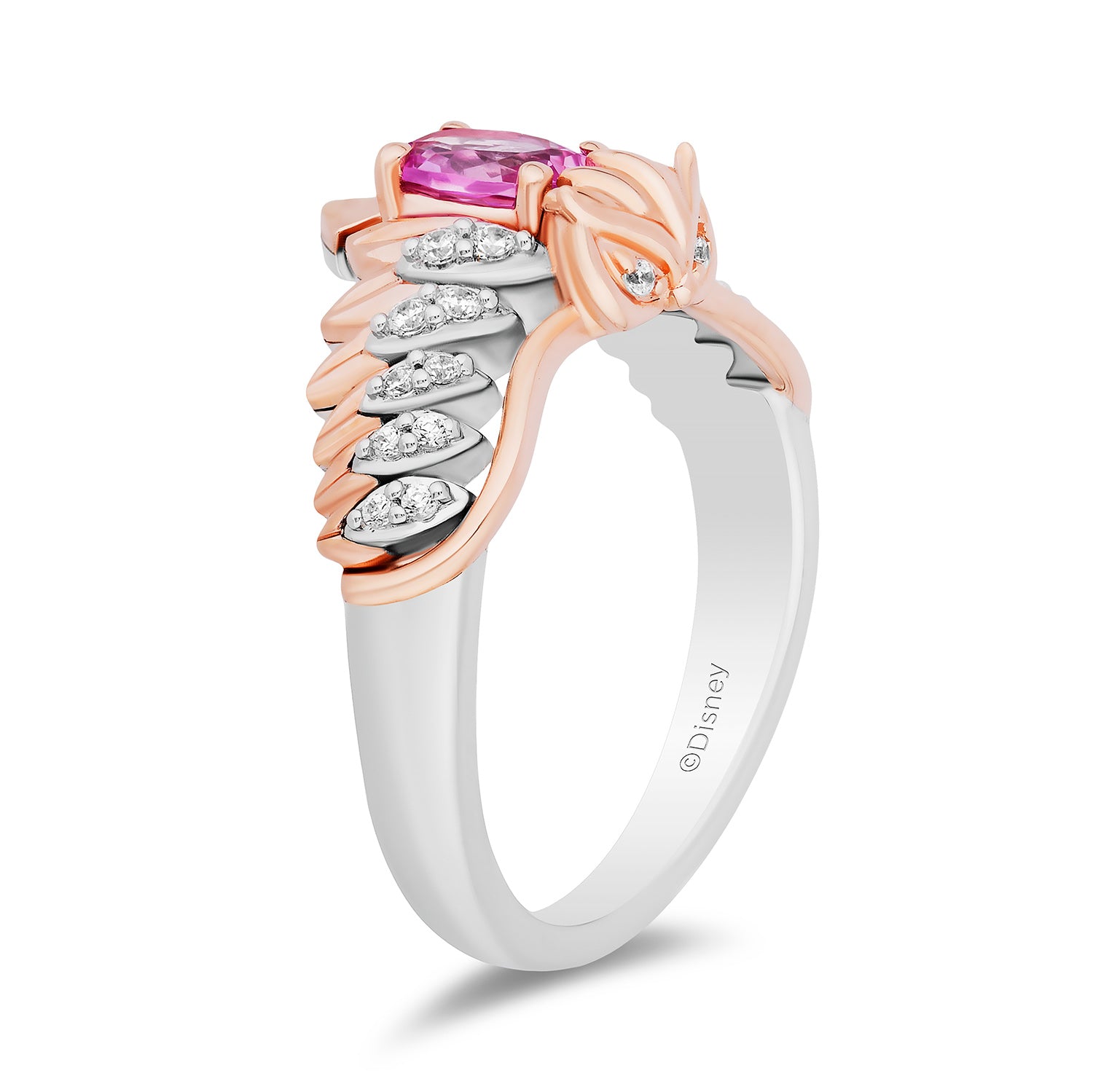 Redeem Sparkles on your next orderEnchanted Disney Fine Jewelry 14K Rose Gold Over Sterling Silver with 1/8 CTTW Diamonds and Created Pink Sapphire Aurora Owl Ring