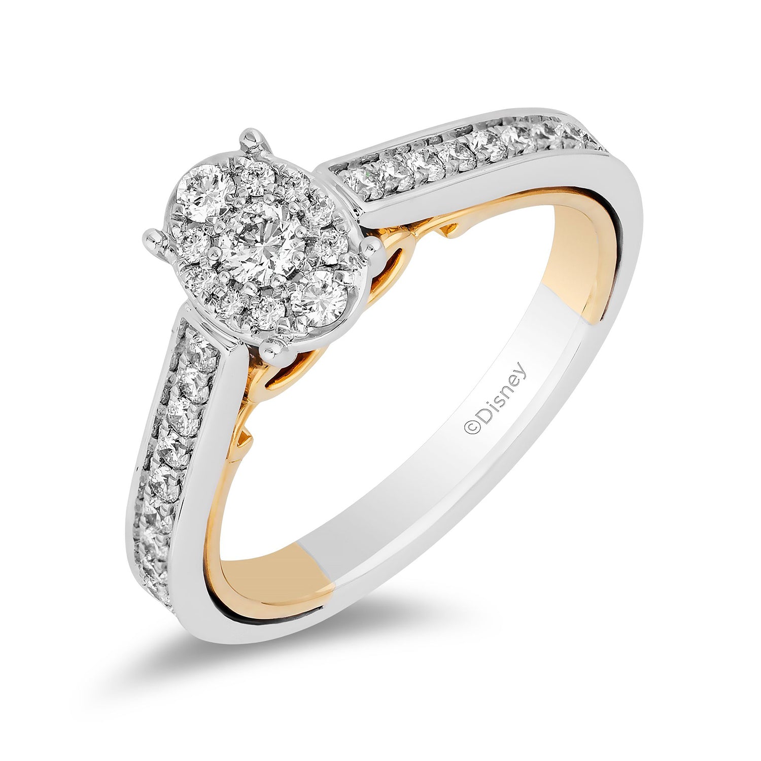 Bringing a directional appeal to a classic engagement ring, this Enchanted Disney Fine Jewelry 14k White Gold and Yellow Gold 1/2 CTTW Diamond Jasmine Rin...