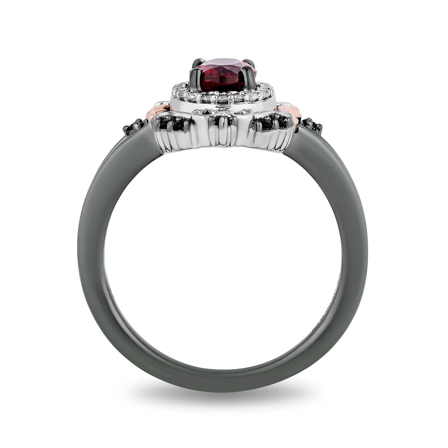 Redeem Sparkles on your next orderEnchanted Disney Fine Jewelry Black Rhodium over Sterling Silver and 10K Rose Gold 1/5 CTTW Black and White Diamond with Red Garnet Evil Queen Ring