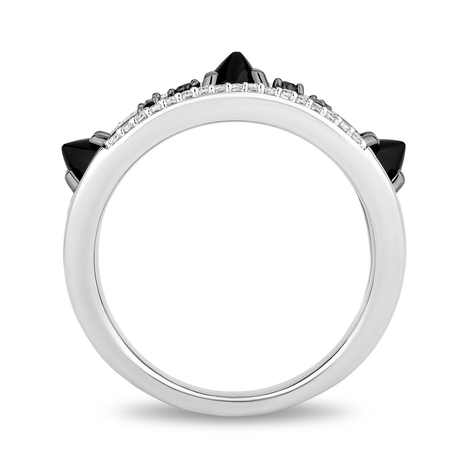 Embrace the allure of the night with the Maleficent Ring, a symbol of strength and passion. Crafted in black rhodium over sterling silver, this captivating piece features 1/5 CTTW of brilliant diamonds that shimmer like moonlight. The black onyx reflects the depth of an untamed heart, making it perfect for those who love fiercely and live boldly.