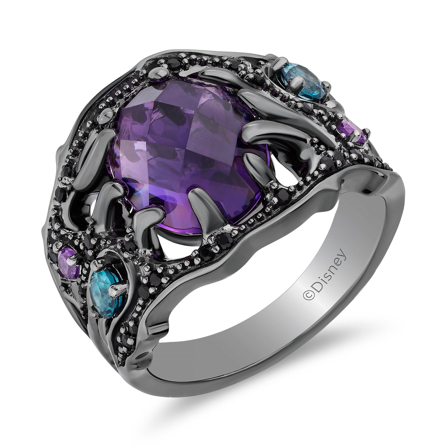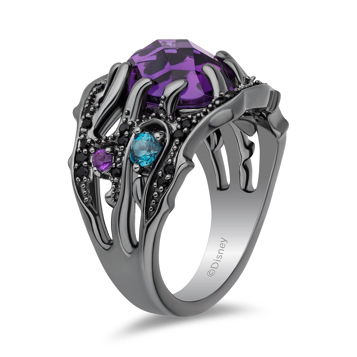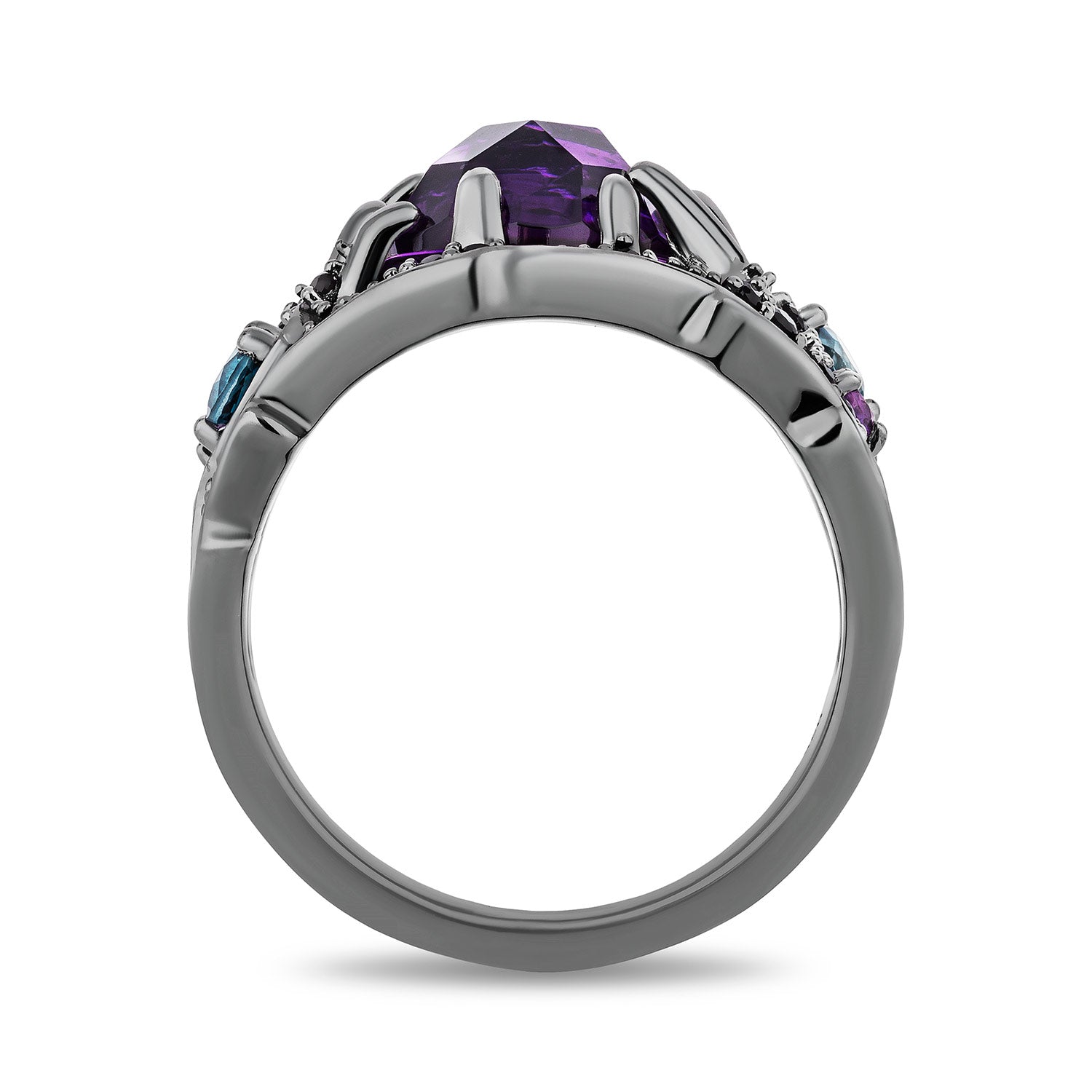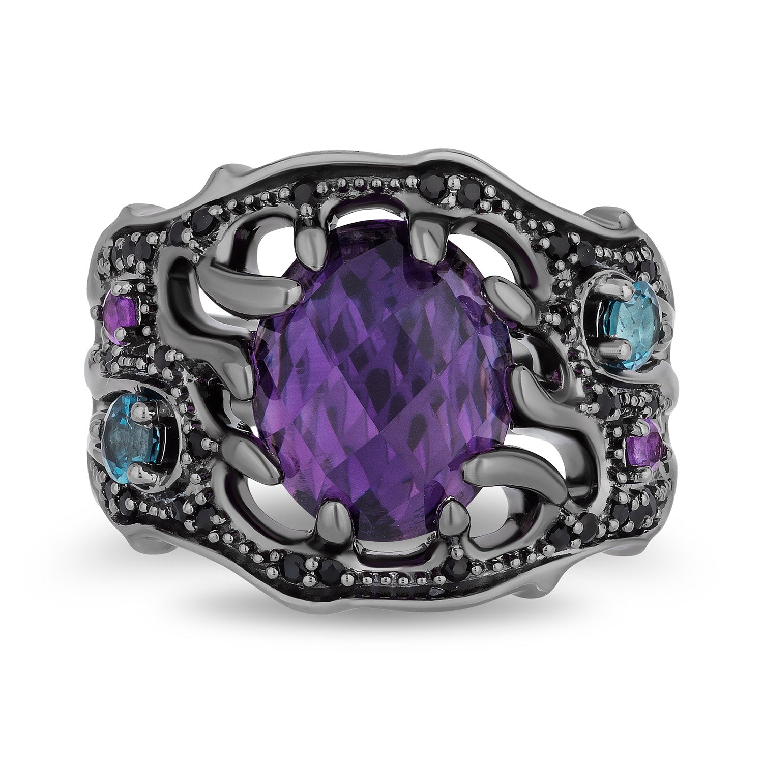 Bold, vibrant, and unforgettable—this Ursula Ring embodies strength and ambition in its most captivating form. The rich London blue topaz and deep amethyst, set against striking black rhodium, evoke the wonder of cherished adventures. The black onyx adds timeless elegance, making this ring as unique as your story.