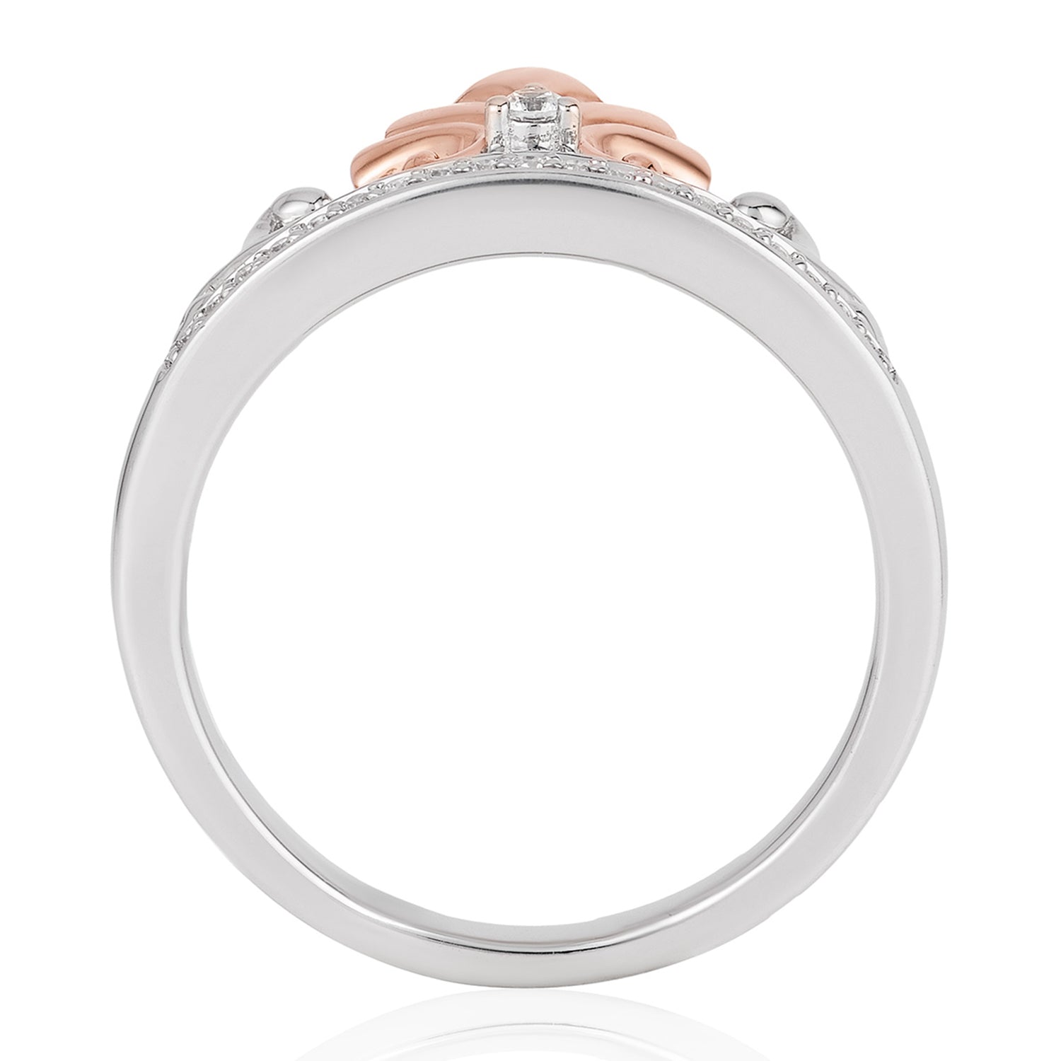 Enchanted Disney Fine Jewelry Sterling Silver and 10k Rose Gold 1/10 CTTW Ariel Shell Tiara Ring