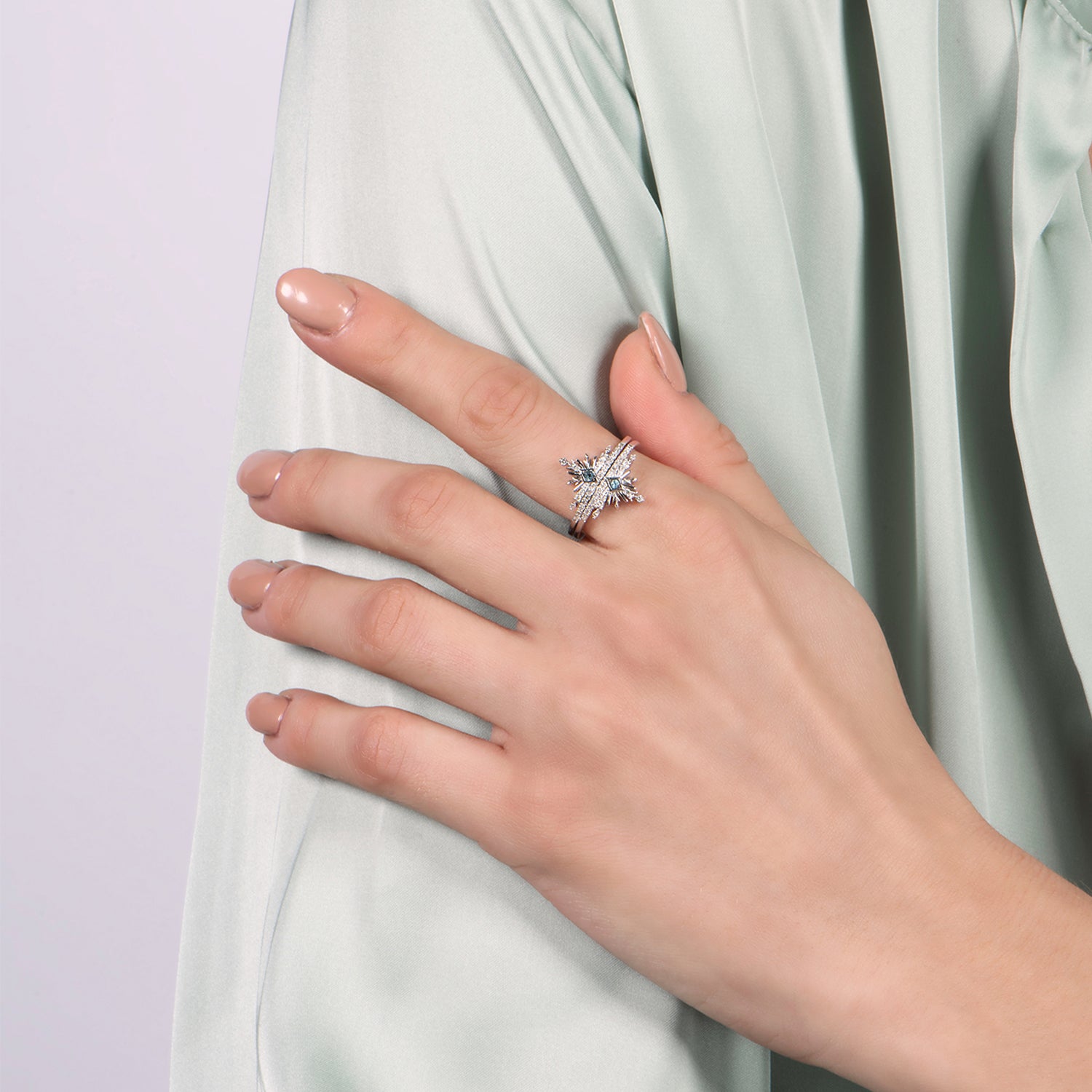 Redeem Sparkles on your next orderEnchanted Disney Fine Jewelry Sterling Silver with 1/4 CTTW Diamond and Swiss Blue Topaz Frozen 2 Elsa Snowflake Ring