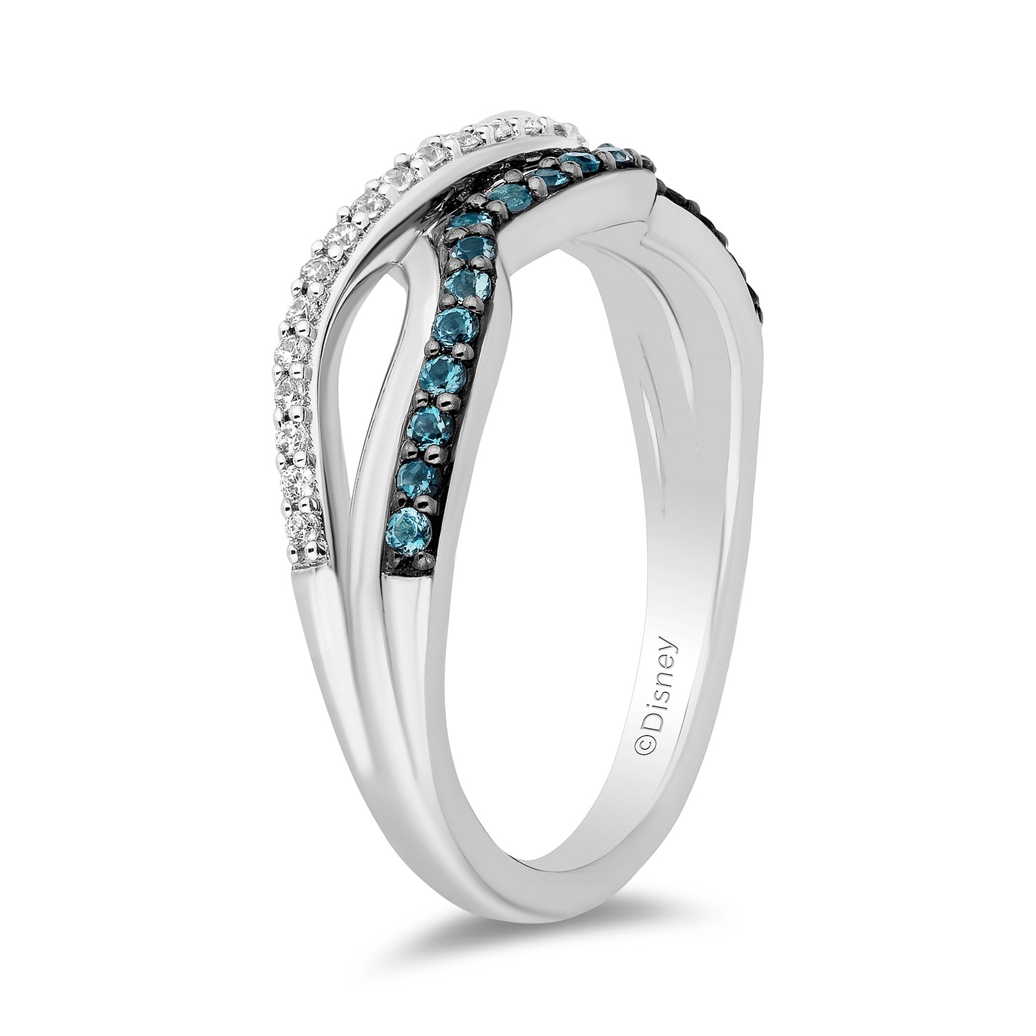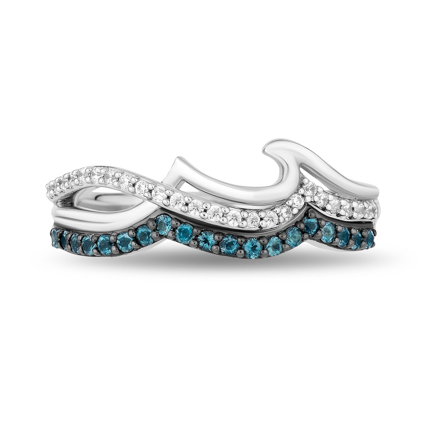 Enchanted Disney Fine Jewelry Sterling Silver with 1/8 CTTW Diamonds and London Blue Topaz Moana Wave Ring