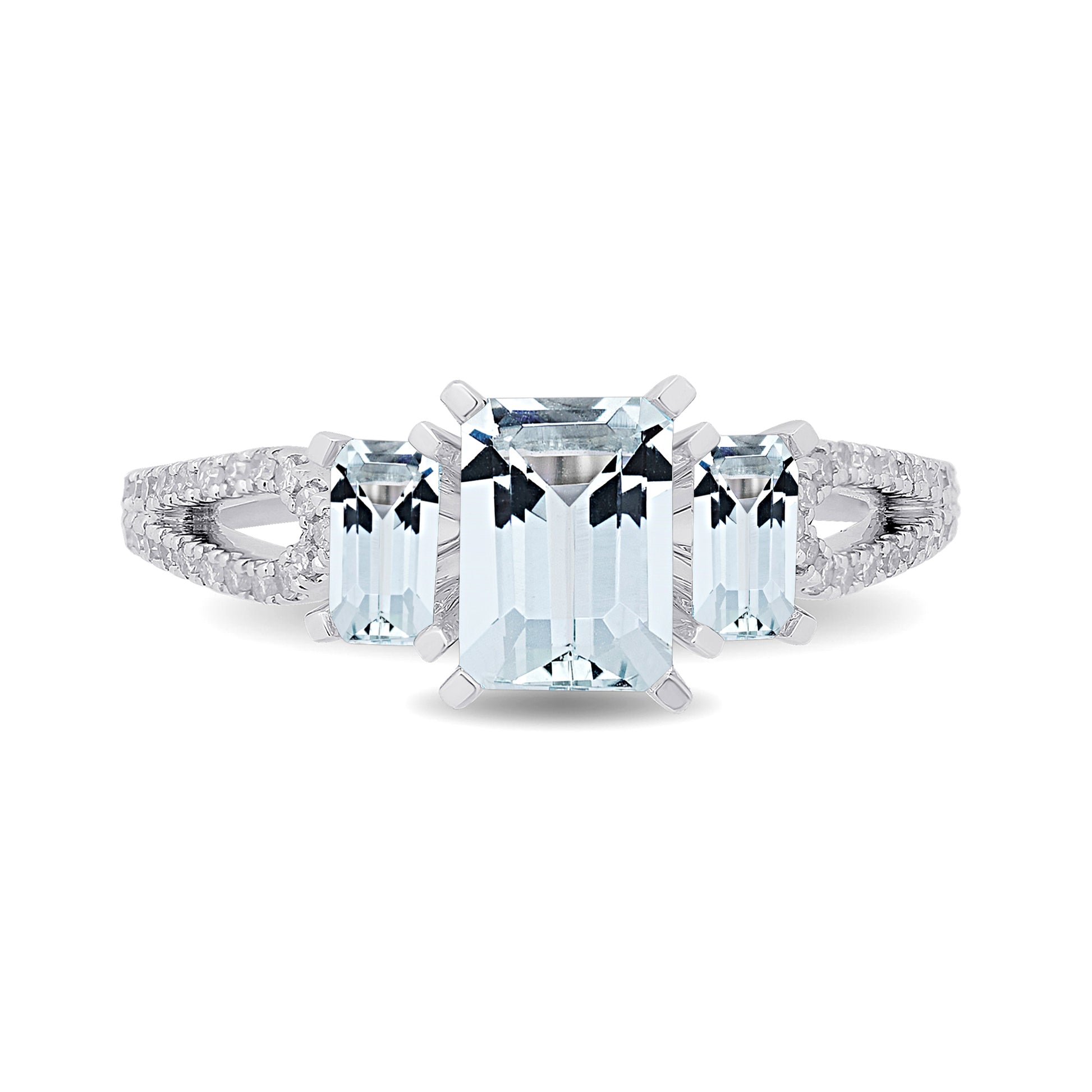 A three-stone ring fit for your queen. This Enchanted Disney Fine Jewelry Sterling Silver with 1/8 CTTW Diamond and Sky Blue Topaz Elsa Ring features three octagon-cut topaz in a captivating sky blue hue. Carrying a stone of nobility and eternal romance, this ring perfectly communicates how clear your feelings are, how pure your intention is, and how ready you are for a lifelong commitment with her.
