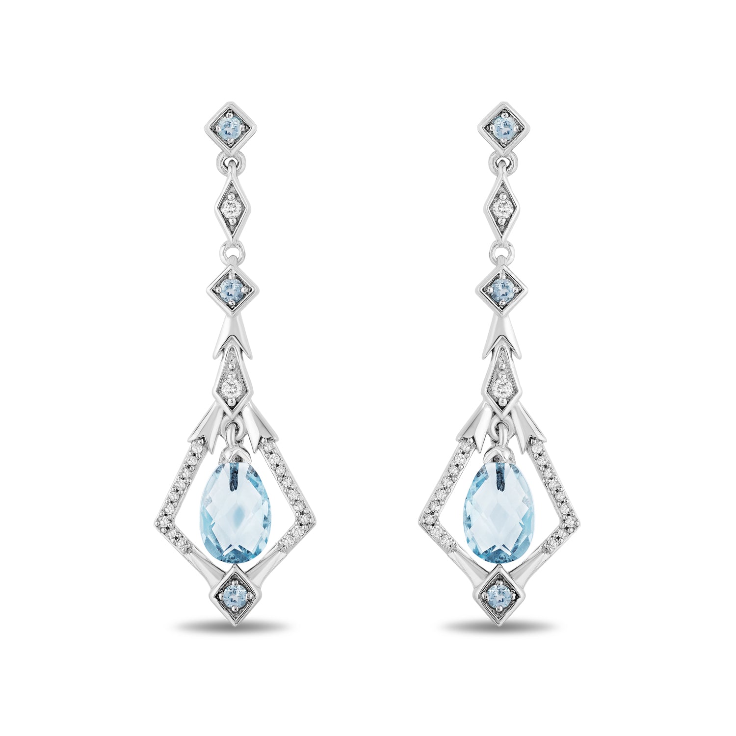 Redeem Sparkles on your next orderEnchanted Disney Fine Jewelry Sterling Silver with 1/8 CTTW Diamond and Swiss Blue Topaz Elsa Dangling Earrings
