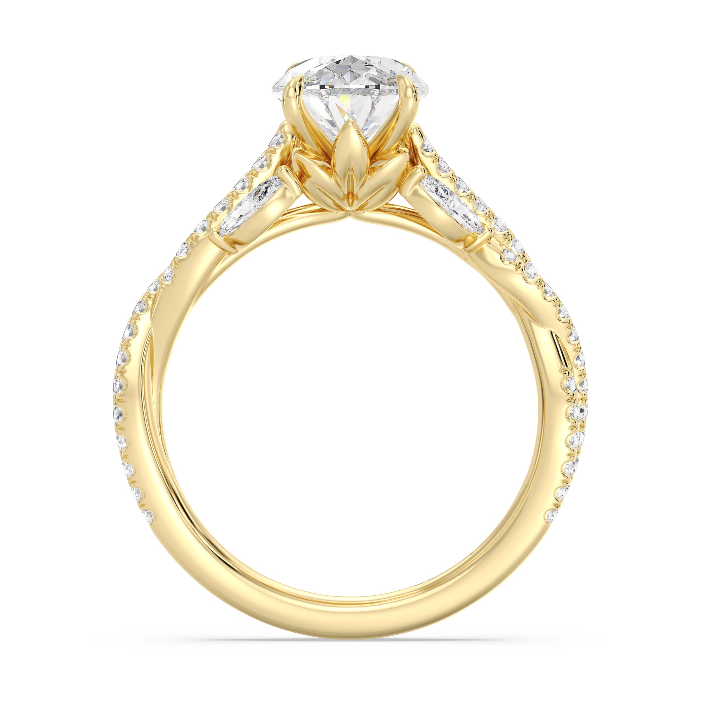 A celebration of free-spirited beauty, this ring showcases a radiant lab-grown diamond embraced by an organically twisting vine-style 14K gold band. Pavé-set diamonds highlight every curve, giving the design a soft, garden-like sparkle that reflects love that grows brighter with time.
