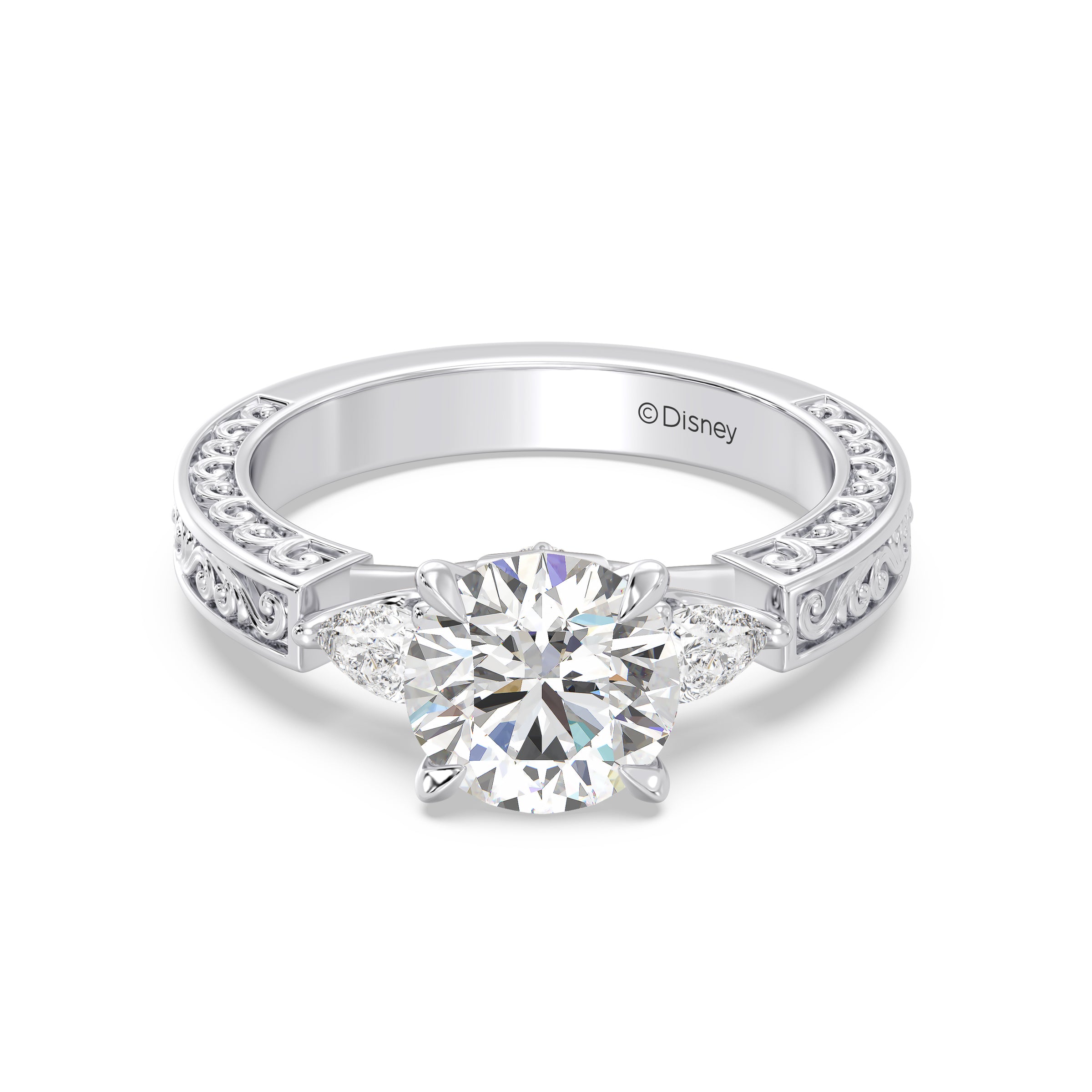 Three luminous lab grown diamonds take center stage in this Disney Princess Aurora inspired engagement ring, creating a classic and meaningful silhouette....